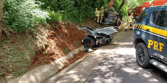 Homem perde a vida e mulher fica ferida após carro colidir com árvore na BR-116, em Dois Irmãos
